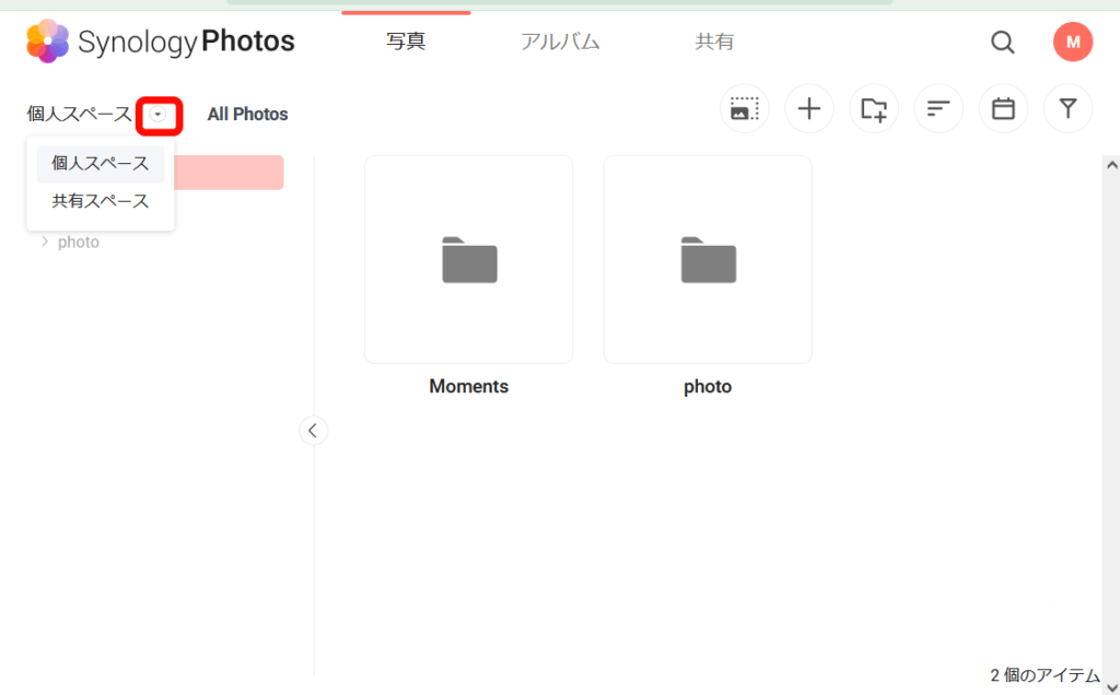 これは synology photos で「管理」権限を持っていれば誰でも使用可能。