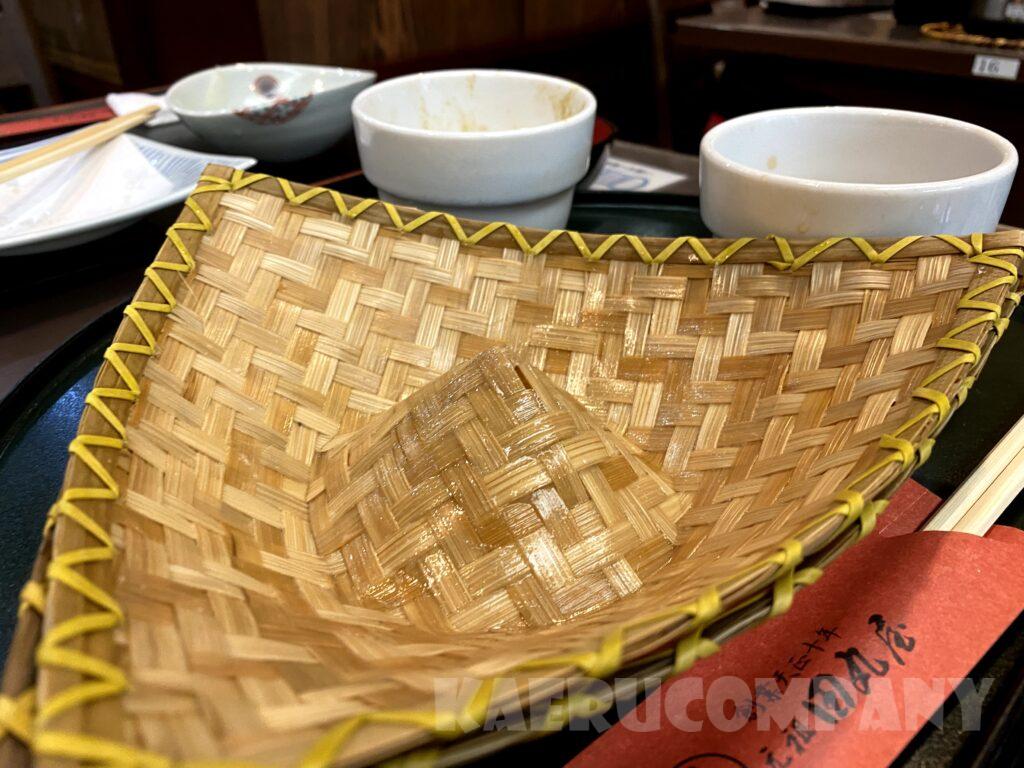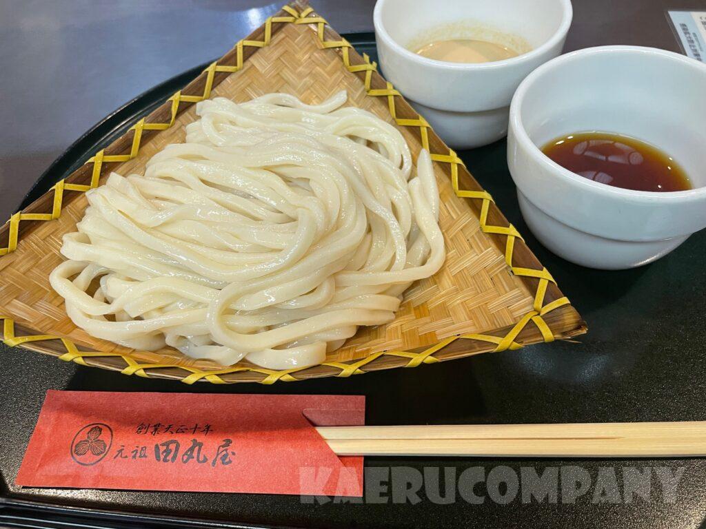 麺は若干細めでコシと弾力があり、ところどころ透き通るつるつるした白い麺である。冷たいざるうどんで提供される場合が多い。つけ汁は、しょうゆだれやゴマだれなど、店によって異なる。ウィキペディア参照