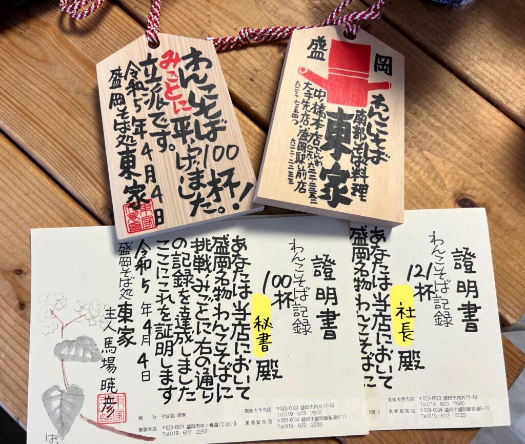 100杯食べなくても下の証明書はわんこそばを食べた人全員がもらえます。